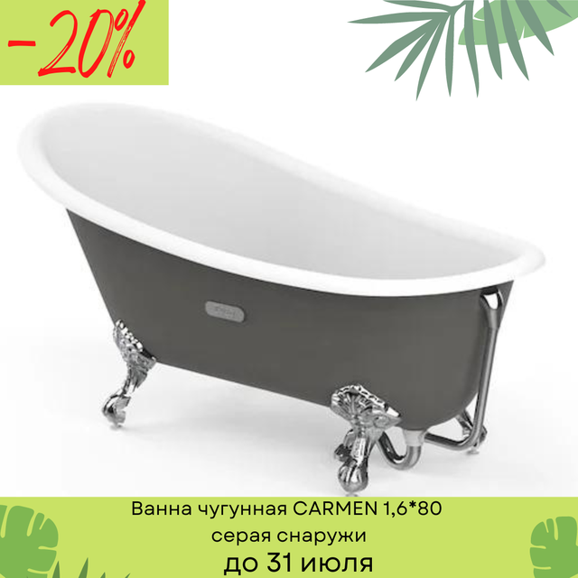 Ванна чугунная CARMEN 1,6*80 серая снаружи — Ретро-модель, черпающая вдохновение в прошлом, дает волю воображению и сочетает в себе прошлые эры и новейшие характеристики и достоинства. Roca предлагает коллекцию керамики и мебели Carmen в винтажном стиле. Это дань уважения культовому дизайну середины 40-х годов, в котором была выполнена раковина с одноименным названием. Сегодня он вернулся, чтобы стать частью комплексной коллекции с применением последних инноваций в области дизайна ванных комнат.